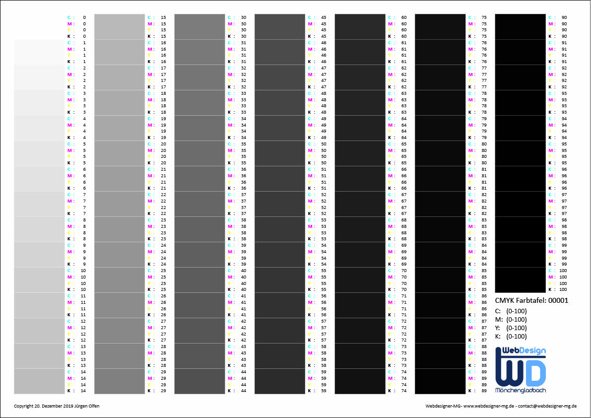 Ich biete die CYMK-Farbtabellen und CMYK-Farbschemen als 72dpi JPG-Dateien kostenlos zum Download an.